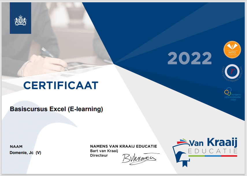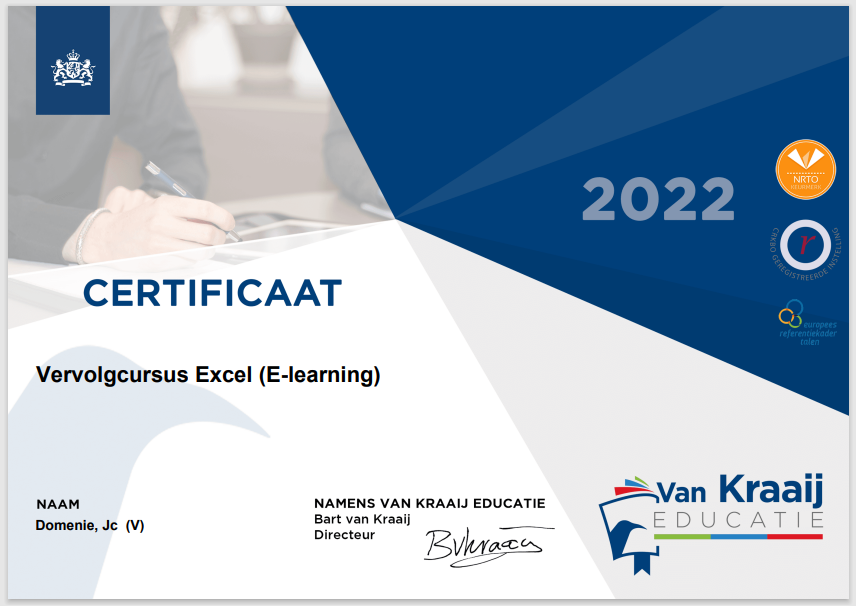 om ook de vervolgcursus Excel van VanKraaij te volgen.
